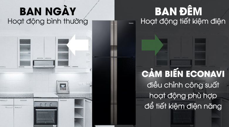 Cảm biến Econavi có khả năng nhận biết được nhiệt độ bên trong và ngoài tủ, tần suất mở đóng tủ, ghi nhớ thời gian bạn hay sử dụng tủ từ đó điều chỉnh công suất linh hoạt, duy trì độ lạnh thích hợp cho tủ lạnh. Theo đó, sẽ giúp giảm lãng phí điện năng tiêu thụ mà vẫn đảm bảo hiệu quả bảo quản thực phẩm tốt nhất.