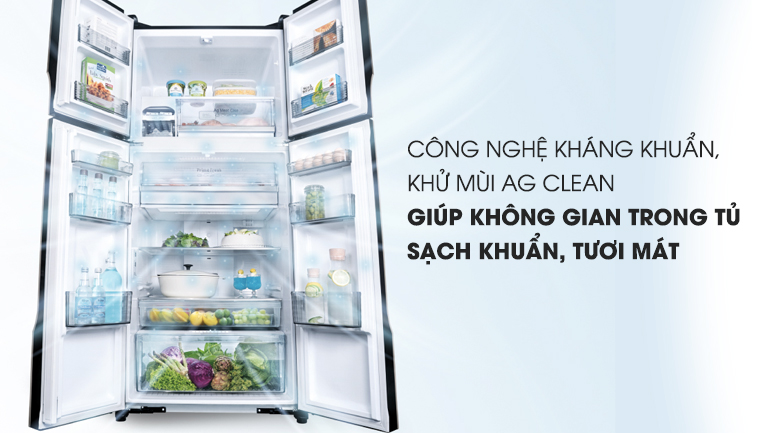 Công nghệ kháng khuẩn tinh thể bạc Ag Clean sử dụng các ion Ag giúp tiêu diệt nấm mốc và vi khuẩn bên trong ngăn tủ, kháng khuẩn và khử mùi hôi khó chịu, giúp bảo quản thực phẩm tươi ngon hơn, an toàn cho sức khỏe của gia đình bạn.