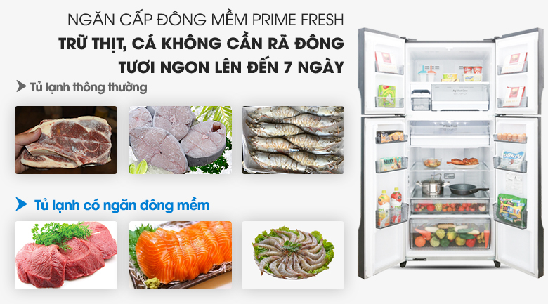 Tủ lạnh NR-DZ600GKVN thiết kế ngăn cấp đông mềm thế hệ mới Prime Fresh+ bảo quản thực phẩm ở mức -3 độ C, duy trì nhiệt độ nhẹ, ổn định giúp thực phẩm luôn tươi ngon mà không bị đông cứng nên bạn không cần rã đông thực phẩm trước khi nấu ăn. Theo đó, việc nấu nướng sẽ trở nên nhanh chóng hơn. Thực phẩm cũng sẽ giữ được lượng dinh dưỡng cao và hương vị tươi ngon.