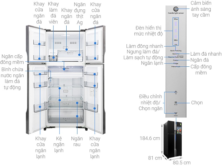 Không chỉ vậy, điểm nhấn của chiếc tủ lạnh này còn nằm ở tay cầm phát sáng khi cảm biến phát hiện có người, mang đến cho bạn sự thuận tiện khi cần sử dụng tủ lạnh vào ban đêm. Hệ thống chiếu sáng xanh đẹp mắt nâng tầm phong cách hiện đại cho mọi không gian nhà bếp.