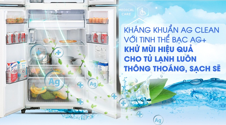 Công nghệ kháng khuẩn tinh thể bạc Ag Clean sử dụng các ion Ag giúp tiêu diệt nấm mốc và vi khuẩn bên trong ngăn tủ, kháng khuẩn và khử mùi hôi khó chịu, giúp bảo quản thực phẩm tươi ngon hơn, an toàn cho sức khỏe của gia đình bạn.