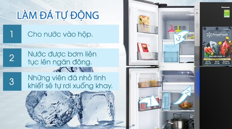 Tủ lạnh Panasonic NR-DZ600GXVN thiết kế ngăn làm đá tự động hiện đại, chỉ cần cho nước vào khay chứa nước, đá sẽ tự động được làm và cho vào hộp chứa, có sẵn mỗi khi bạn cần sử dụng rất tiện lợi mà lại tiết kiệm thời gian.