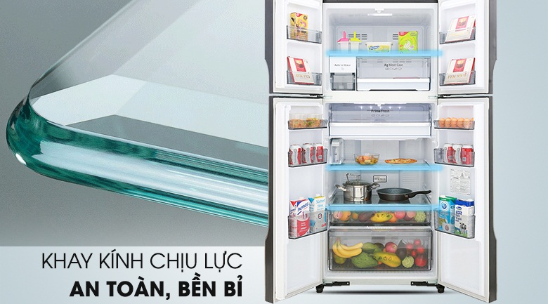 Tủ lạnh thiết kế các khay kệ kính chịu lực tốt, chắc chắn, đáp ứng tốt nhu cầu bảo quản nhiều loại thực phẩm có kích thước, trọng lượng khác nhau. Khay kính cũng dễ dàng hơn khi vệ sinh, làm sạch.