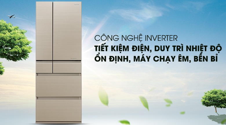 Tủ lạnh tích hợp công nghệ Inverter giúp duy trì độ lạnh phù hợp, làm lạnh hiệu quả, ổn định, tiết kiệm điện năng. Đồng thời tủ lạnh Panasonic Inverter cũng vận hành êm ái, bền bỉ hơn.