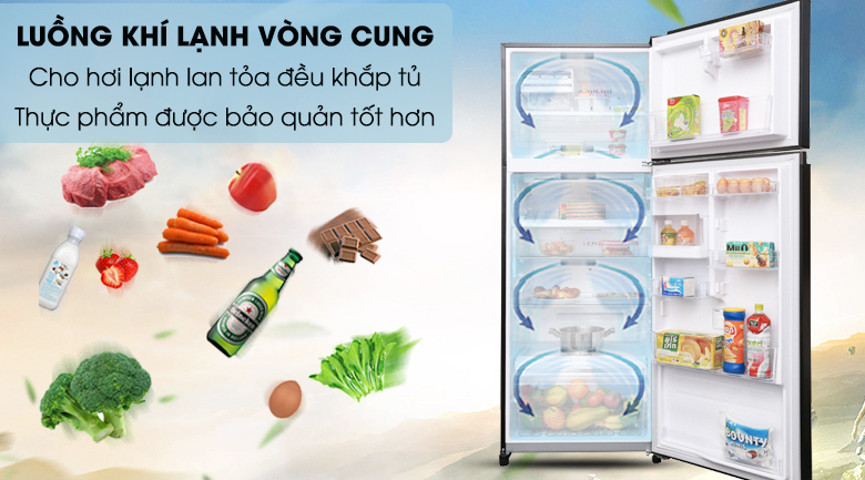Được trang bị luồng khí lạnh vòng cung, tủ lạnh Toshiba AG39VUBZ(XK) giúp cho thực phẩm được bảo quản lạnh đồng nhất và hiệu quả so với hệ thống làm lạnh thông thường, nhờ vậy những món thực phẩm của bạn sẽ giữ được độ tươi ngon lâu hơn so với tủ lạnh thông thường..