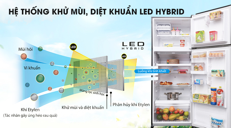 Nhờ sự kết hợp giữa công nghệ Hybrid Bio và tinh thể bạc Ag+ tiếp thêm sức mạnh trong quá trình kháng khuẩn, khử mùi hôi hiệu quả nhất bên trong tủ lạnh chiếc tủ lạnh Toshiba nhà bạn.