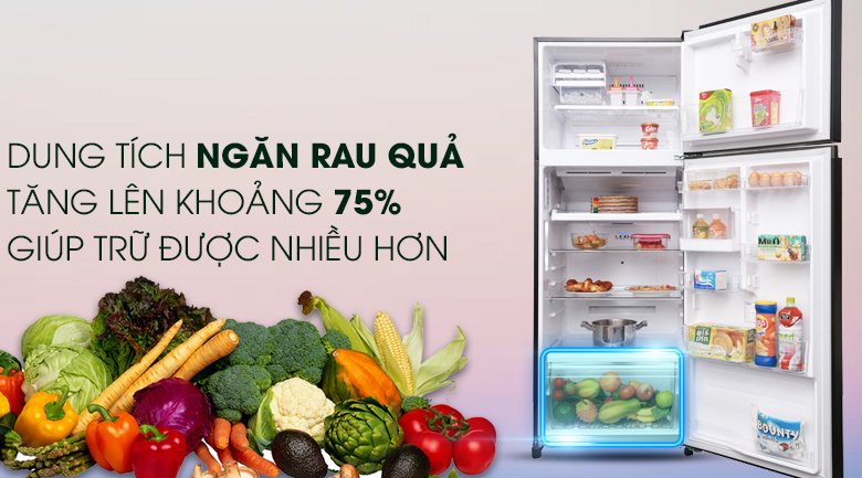 Tủ lạnh được tích hợp ngăn chứa chuyên biệt có khả năng cung cấp độ ẩm, bạn sẽ luôn được thưởng thức món rau quả tươi ngon như mới mua.