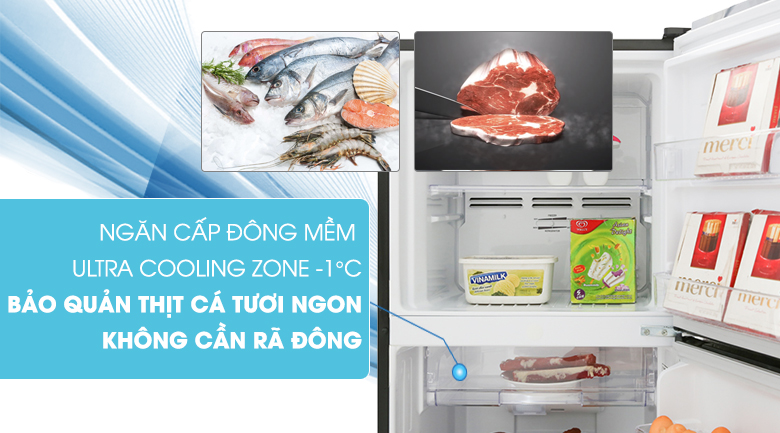 Tủ lạnh Toshiba Inverter B31VU(UKG) trang bị thêm ngăn cấp đông mềm Ultra Cooling Zone giữ nhiệt độ ở mức -1 độ C làm đông nhẹ mặt ngoài thực phẩm, bảo quản thịt cá tươi ngon mà không làm đông đá. Bạn sẽ không cần mất thời gian rã đông trước khi chế biến. Cùng với đó, thực phẩm được bảo quản tươi ngon, giữ trọn hương vị và dinh dưỡng. Ngăn đông mềm thiết kế dạng kín hạn chế lây lan mùi sang các ngăn tủ hay sang thực phẩm khác.