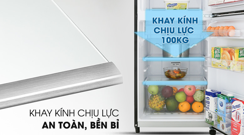 Tủ lạnh thiết kế các khay kính chịu lực bền chắc nên bạn có thể dễ dàng sắp xếp thực phẩm vào tủ mà không lo khay bị vỡ hỏng. Cùng với đó, chất liệu kính chịu lực còn tăng độ sang trọng cho nội thất tủ và vệ sinh, làm sạch cũng dễ dàng hơn.