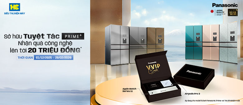 Panasonic kết hợp cùng Điện máy HC mang đến siêu ưu đãi chưa từng có dành riêng cho mùa mua sắm năm nay! Khi chọn mua tủ lạnh Panasonic, khách hàng sẽ được tặng ngay 01 Apple Watch Series 11 GPS 46mm và 01 Apple AirPods Pro 3 chính hãng. Nâng tầm căn bếp với công nghệ vượt trội từ Panasonic và sở hữu thêm bộ đôi thiết bị Apple đẳng cấp – tất cả chỉ trong một lần mua sắm. Số lượng quà tặng cực kỳ giới hạn, đừng bỏ lỡ cơ hội hấp dẫn này!